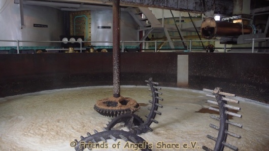 Beim nächsten Schritt handelt es sich um das Maischen. Hierzu wird das Gerstenmalz zunächst in einer Mühle geschrotet. Viele Destillerien benutzen hierzu sehr alte Mühlen, teilweise noch aus dem Beginn des 20.Jahrhunderts.