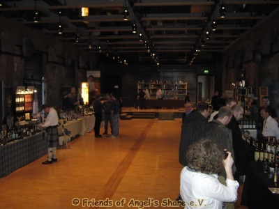 Ein Blick in den Hauptraum der Whiskymesse - kurz nach der Eröffnung um 11 Uhr. Da waren die Räumlichkeiten noch schön leer und man konnte in aller Ruhe stöbern. Die Messe sollte im Laufe des Tages aber noch um einiges voller werden.